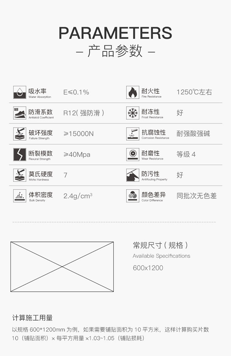 常規600*1200(mm),其他尺寸可加工