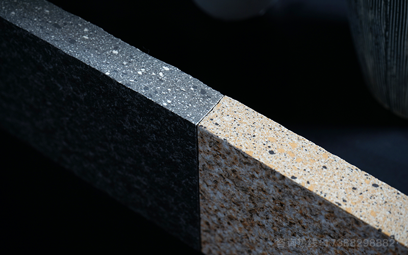仿石厚磚,它不僅能仿麻石還能仿木紋和大理石紋,普通厚度1cm至2cm可選,能上墻干掛也能下地鋪貼。
