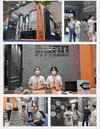 在A3033展位上,冠源陶瓷引來諸多好奇目光及熱烈探討,一批又一批的愛“磚”人士駐留于此,情不自禁地被冠源兼具創意及拓新呈現的高端花色產品所吸引,被展位工作人員專業講解、熱情傳遞的冠源理念所感染......