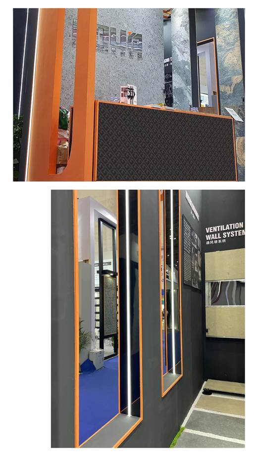 全體參展員工熱情接待了到來的貴賓,為他們介紹了品牌文化、生態石英磚的特性及工藝,揭秘展館的設計理念,分享生態石英磚最前沿的應用趨勢。